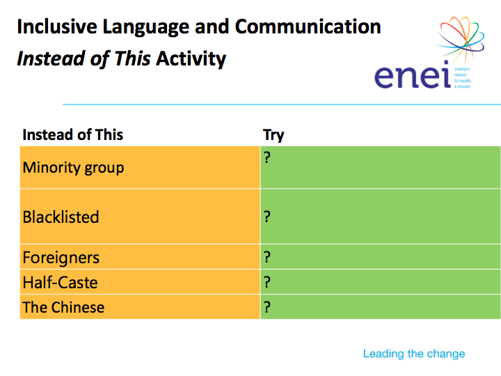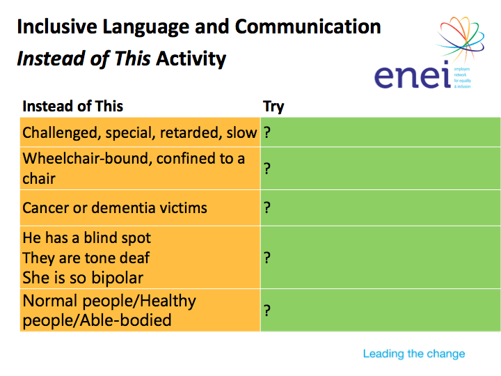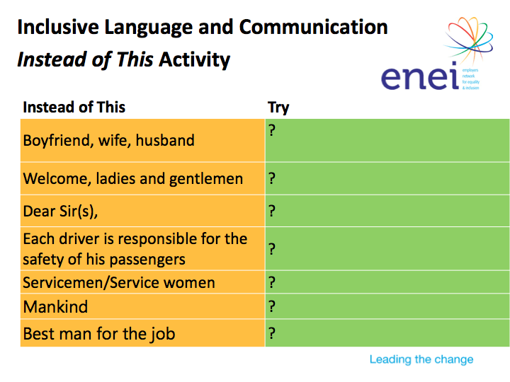 - Consider some Principles of Inclusive Language in relation to Protected Characteristics.
