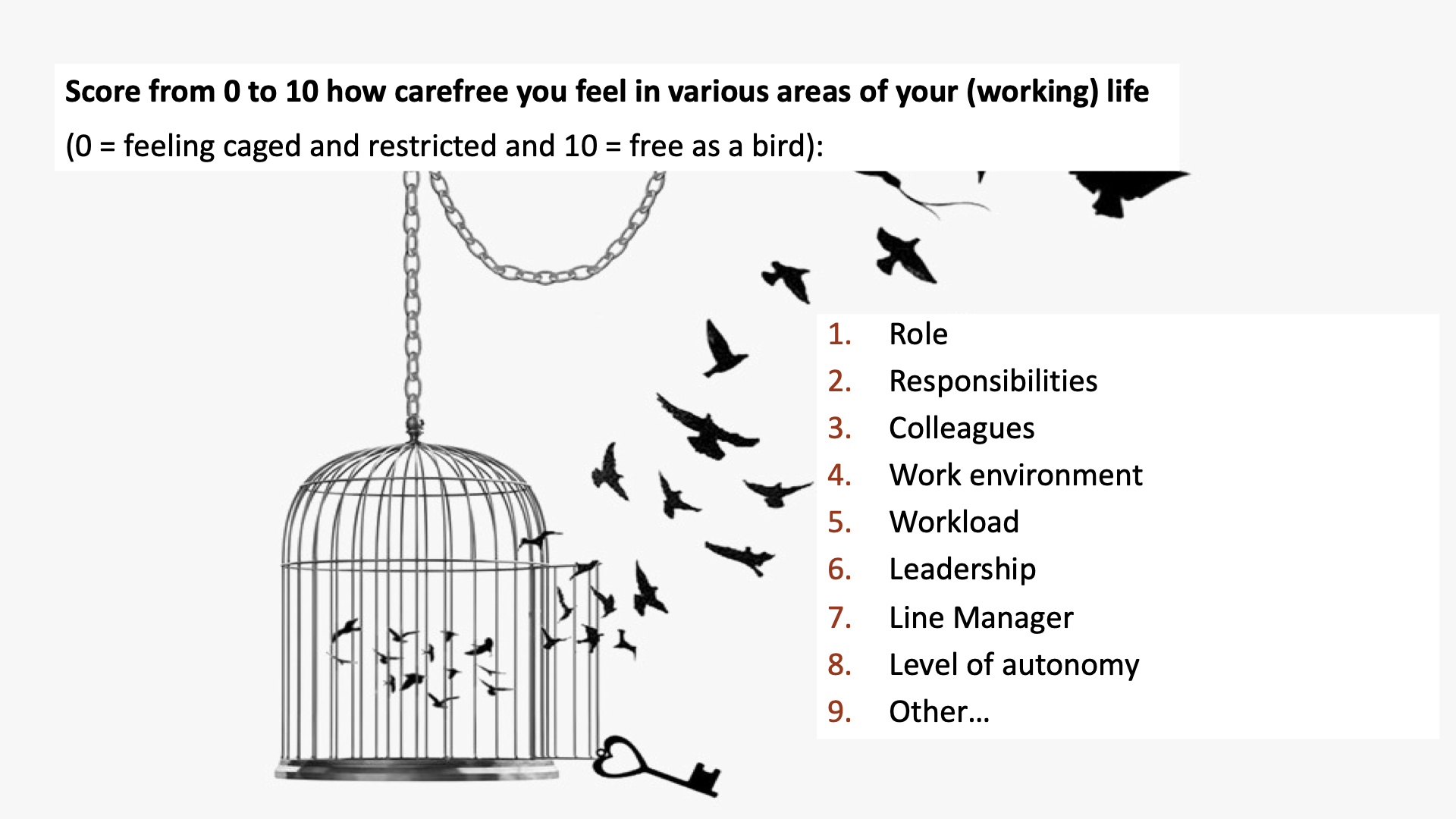 You have both scored from 0 to 10 how carefree you feel in various areas of your (working) life (0 = feeling caged and restricted and 10 = free as a bird):