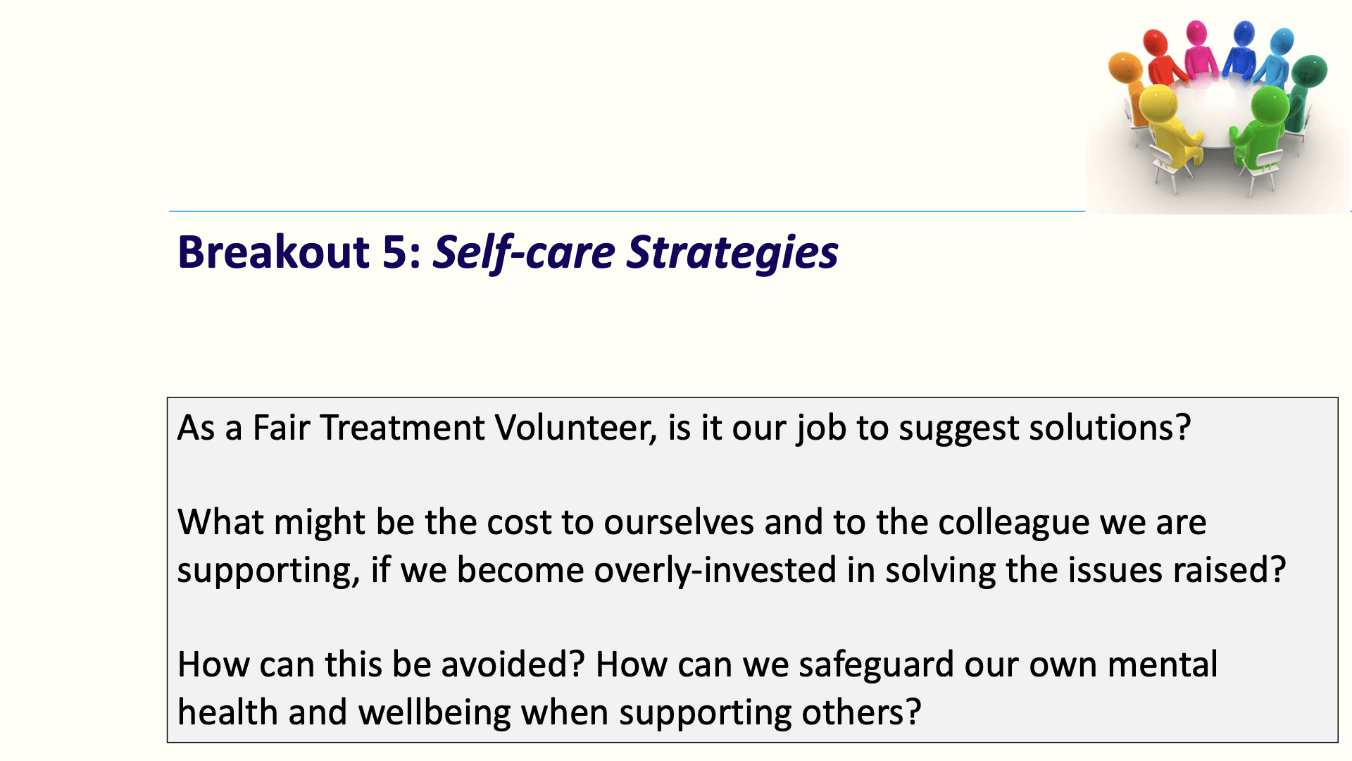 - The facilitator will decide on a speaker who will feedback to the whole group, when we return to the Main Room