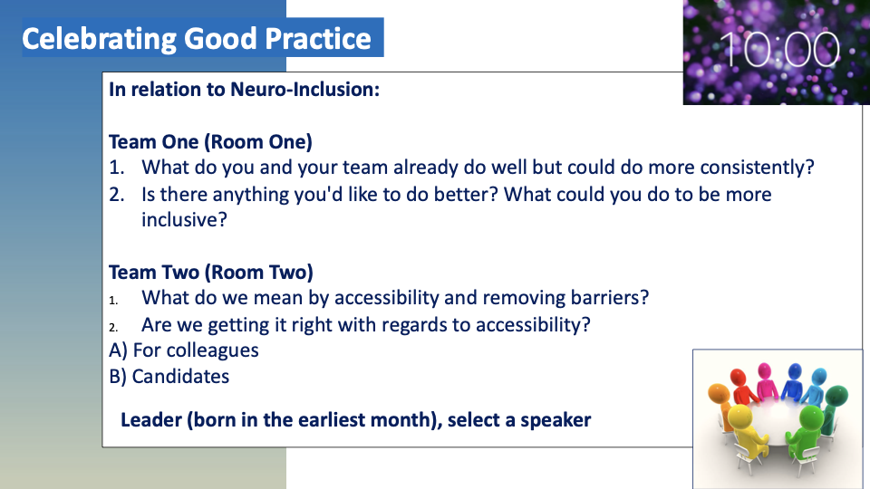 Discuss ways to enhance the experience of underrepresented candidates/colleagues and give an examples of what good looks like.