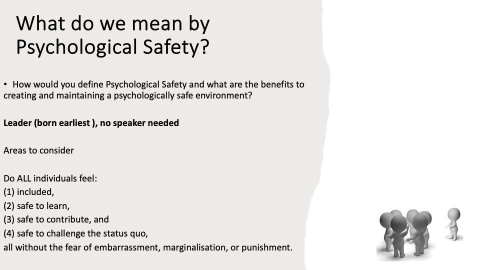 2. What are the benefits to creating and maintaining a psychologically safe environment?