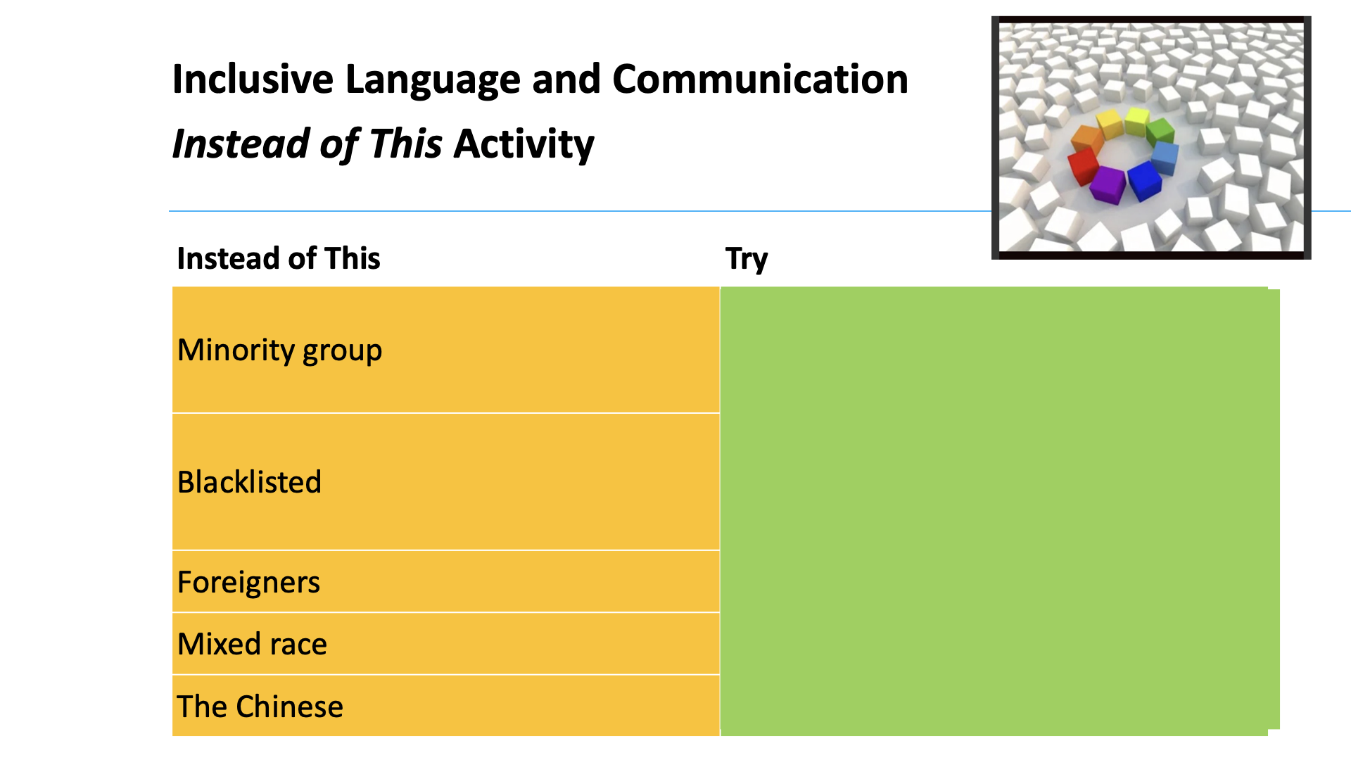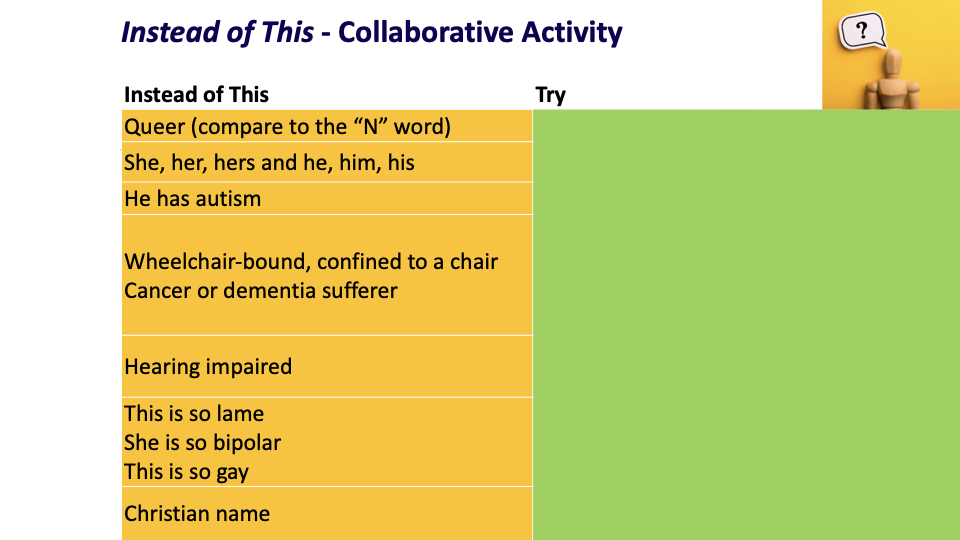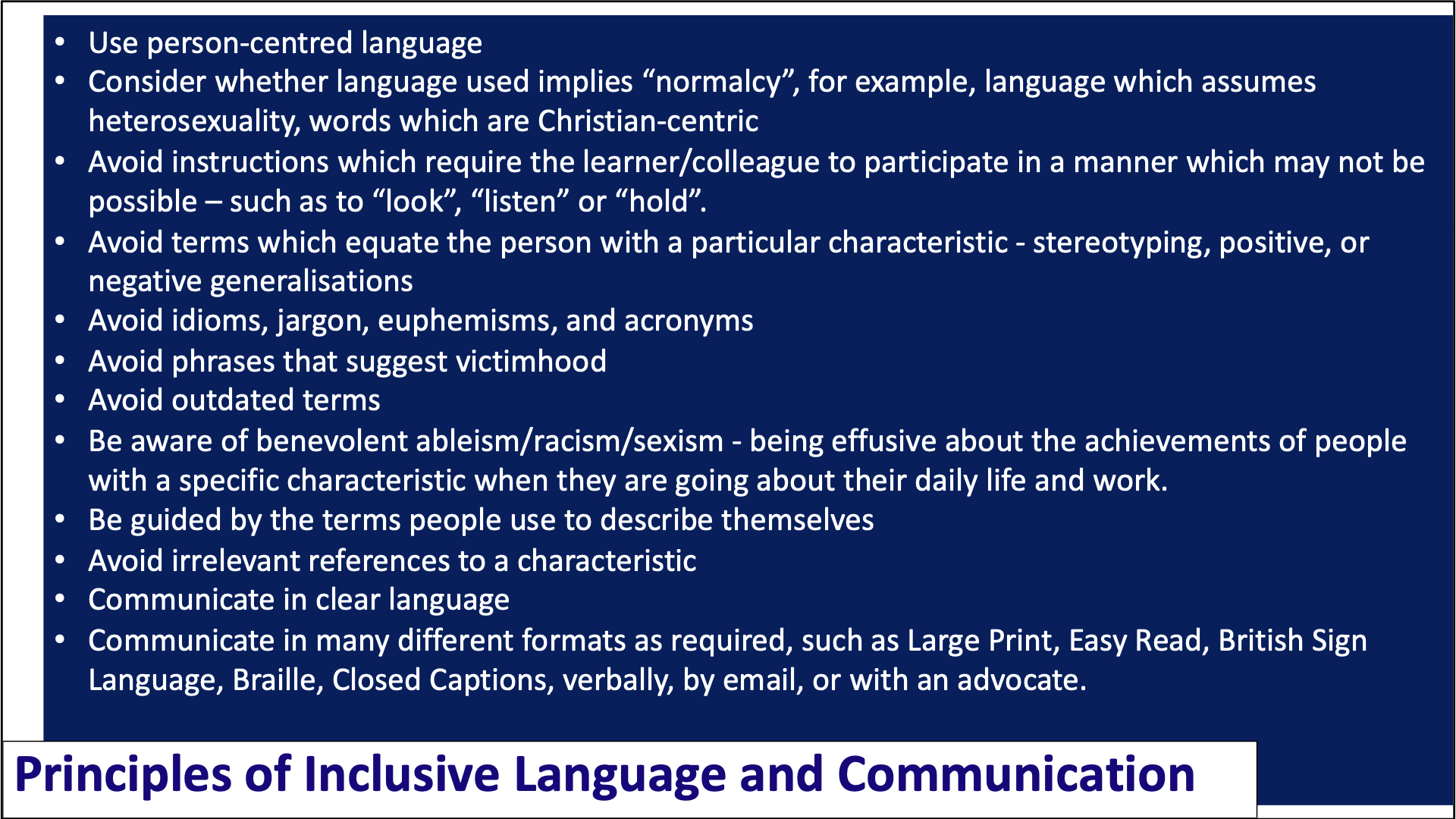 Reflect upon how these examples relate to the Principles of Inclusive Language below.
