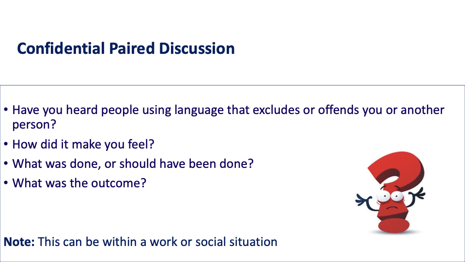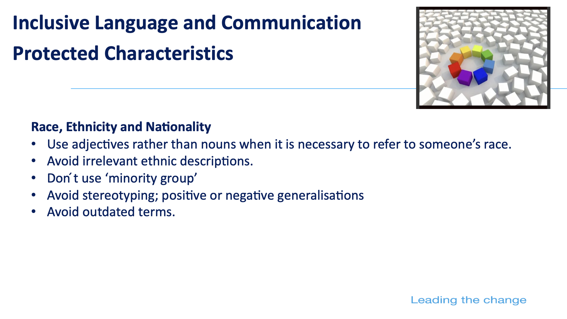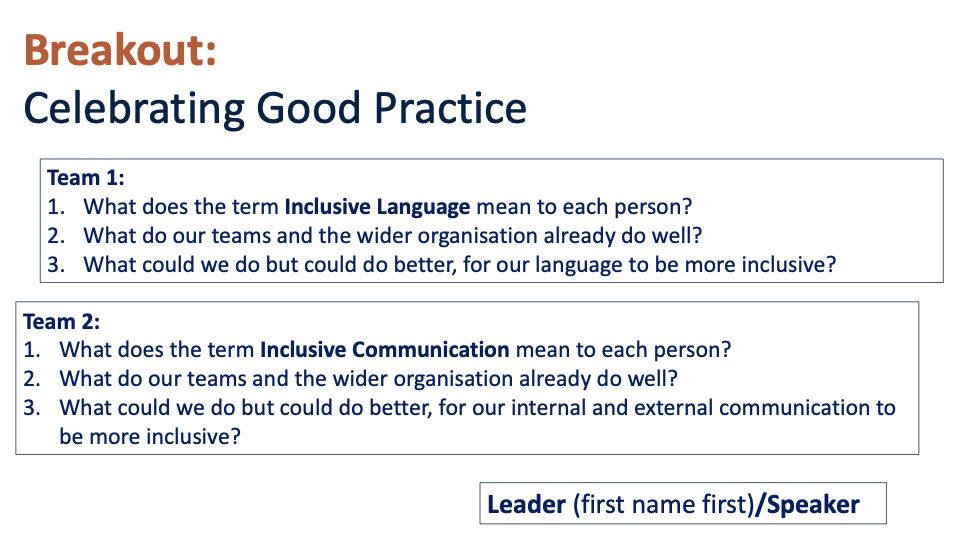 Audit the inclusivity of language and communication within your Team and the wider organisation to celebrate good practice and highlight areas for improvement.